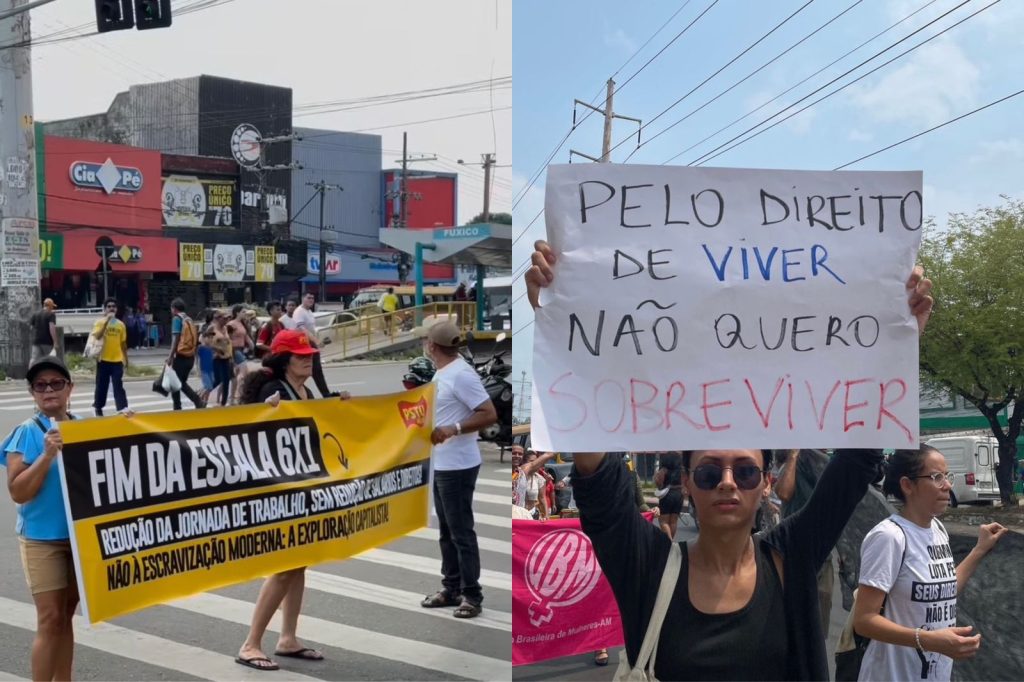 A Avenida Autaz Mirim, na Zona Leste de Manaus, foi palco, nesta sexta-feira (15), de uma manifestação contra a escala 6×1, que só dá direito a um dia de folga para ao funcionário a cada seis dias trabalhados.