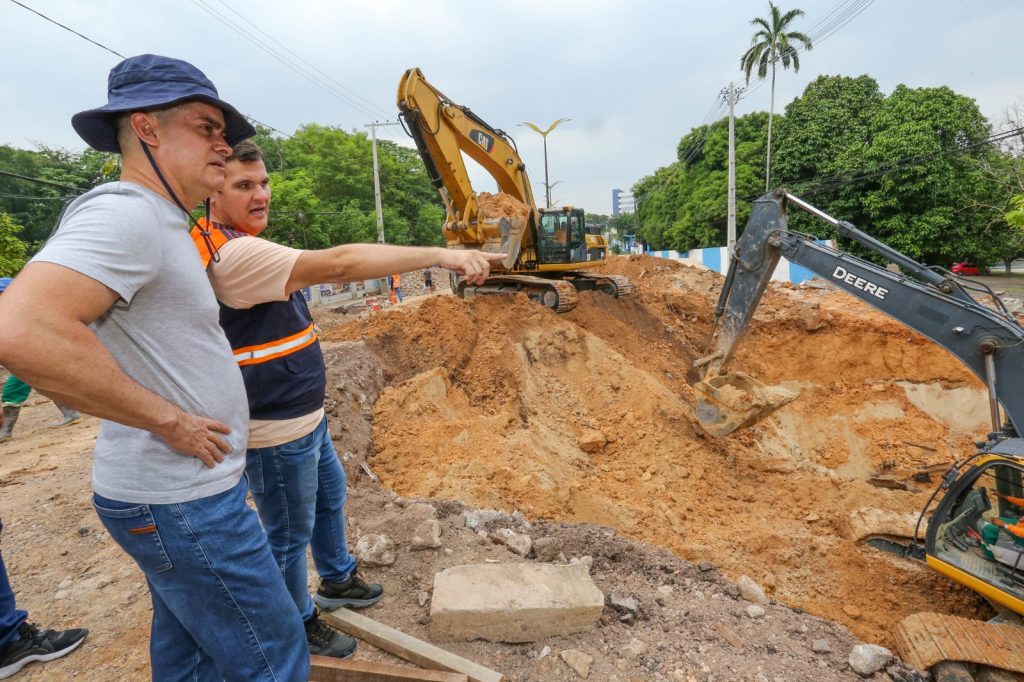 Os trabalhos incluem a estruturação no trecho desnivelado da avenida Mário Ypiranga Monteiro, que conecta os bairros da zona Centro-Sul com os da zona Sul da cidade, conforme destacou o secretário de Obras, Renato Junior.