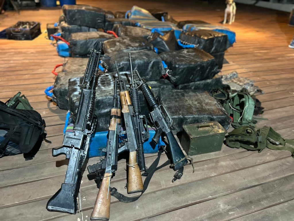 As drogas estavam armazenadas em 44 sacos de fibra, neles continham cerca de uma tonelada e 700 quilos de cocaína e quase 300 quilos de maconha tipo skunk. Foram apreendidos, também, quatro fuzis de uso restrito; uma metralhadora MAG de uso restrito das Forças Armadas; uma lancha semiblindada com dois motores, usadas para transportar os entorpecentes e o grupo criminoso; 21 carregadores e 1.781 munições. Ninguém foi preso.