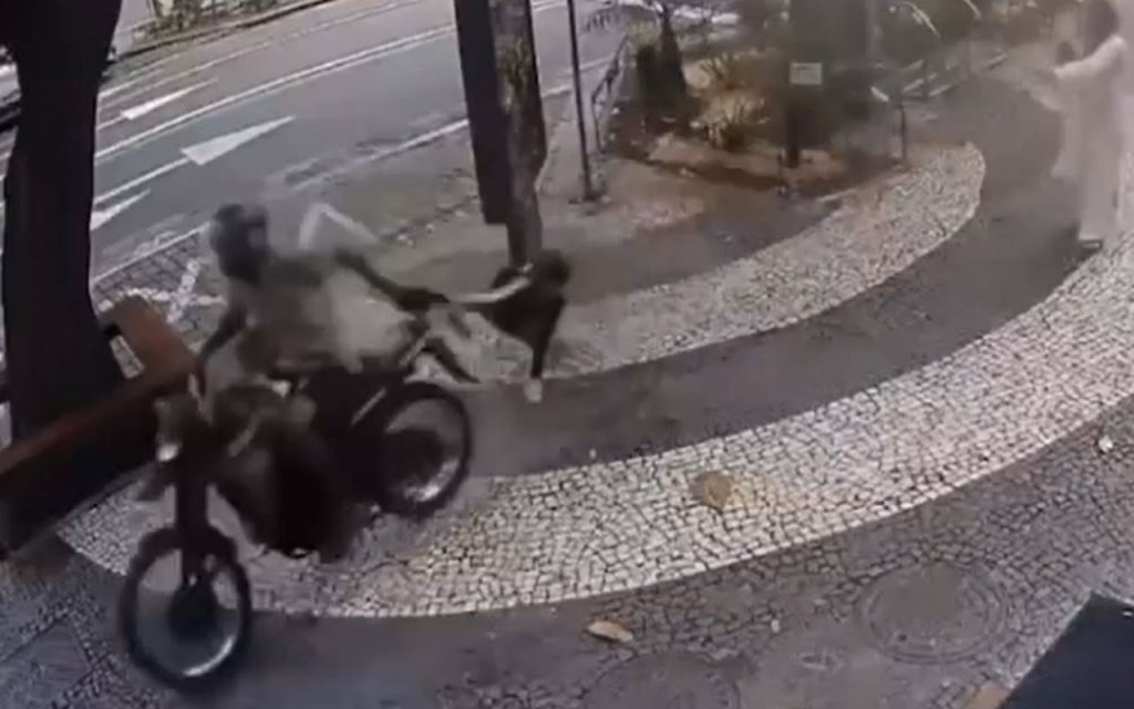 A situação foi registrada por câmeras de segurança. Pelas imagens, é possível ver Cecília acompanhada de uma amiga, quando o suspeito em uma moto e sobre a calçada se aproxima e tenta arrancar a bolsa dela.