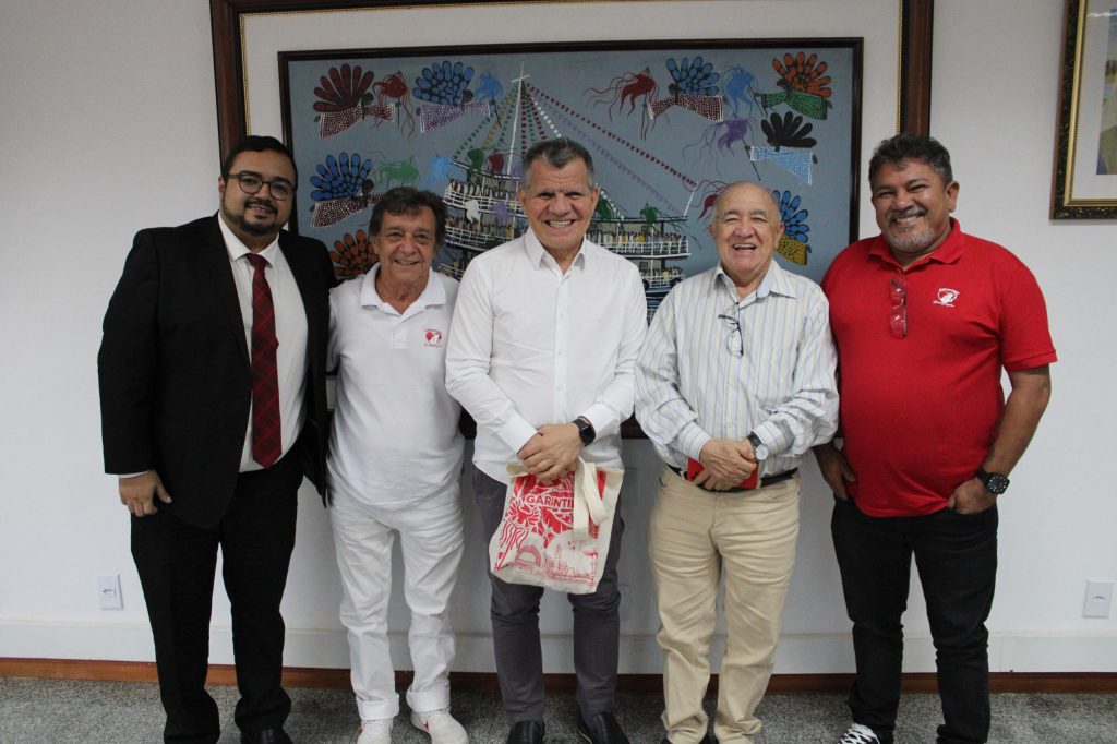 Na quinta-feira (28), o presidente da Associação Folclórica Boi-Bumbá Garantido, Fred Góes, e o vice-presidente, Marialvo Brandão, reuniram-se com o superintendente da Superintendência da Zona Franca de Manaus (Suframa), Bosco Saraiva, para discutir iniciativas voltadas à sustentabilidade no Festival Folclórico de Parintins.