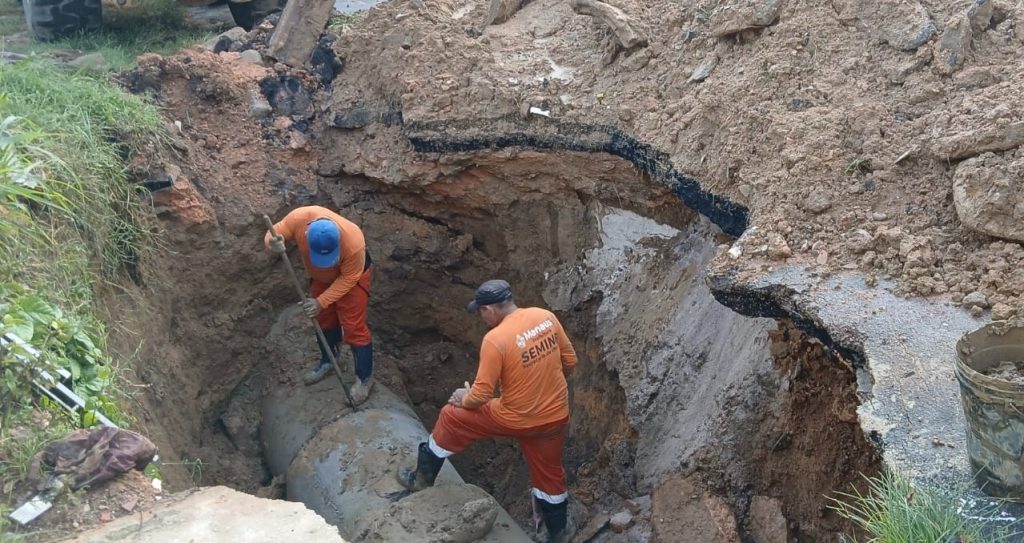 “Assim que tivemos conhecimento do surgimento da cratera na via, enviamos uma equipe para solucionar o problema no menor tempo possível. A substituição dos tubos da galeria subterrânea que estavam danificados foram substituídos por peças novas e mais modernas. A determinação do prefeito David Almeida é que em caso de rompimento de drenagem a intervenção seja imediata e o serviço executado com qualidade e segurança”, explicou Renato Junior.