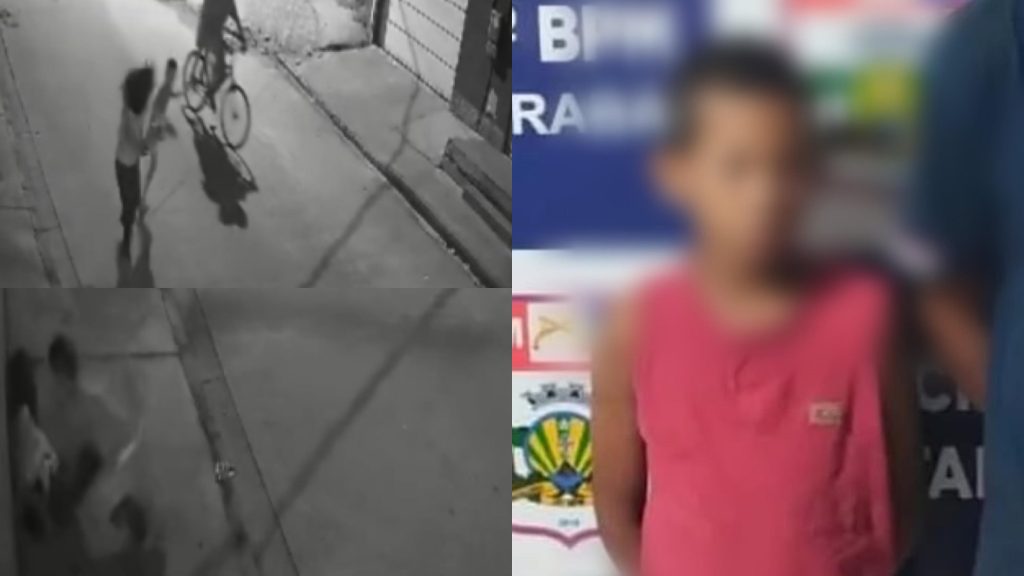 Câmeras de seguranças registraram o momento em que um menino de 11 anos assalta uma mulher em via pública. O crime ocorreu no bairro Liberdade, em Marabá, no Pará, na segunda-feira (9). Após ser identificado pela polícia, o menino foi apreendido neste domingo (15).