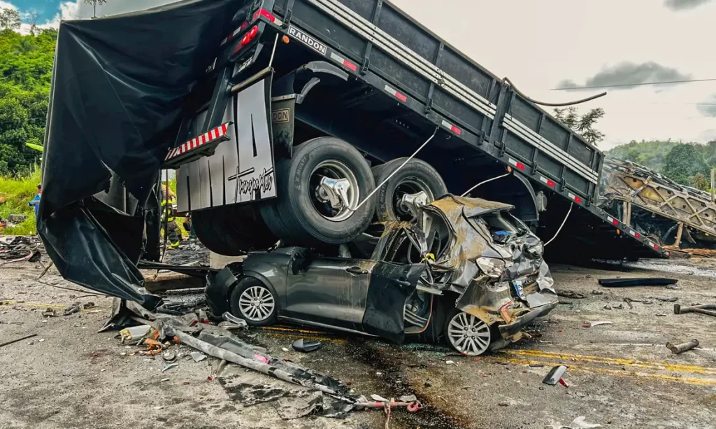 O acidente ocorreu na madrugada deste sábado (21) na BR-116. Segundo informações preliminares da PRF, um granito que estava sendo carregado pela carreta se desprendeu e atingiu um ônibus de turismo, provocando um incêndio no coletivo. Um carro se chocou contra a carreta em seguida.