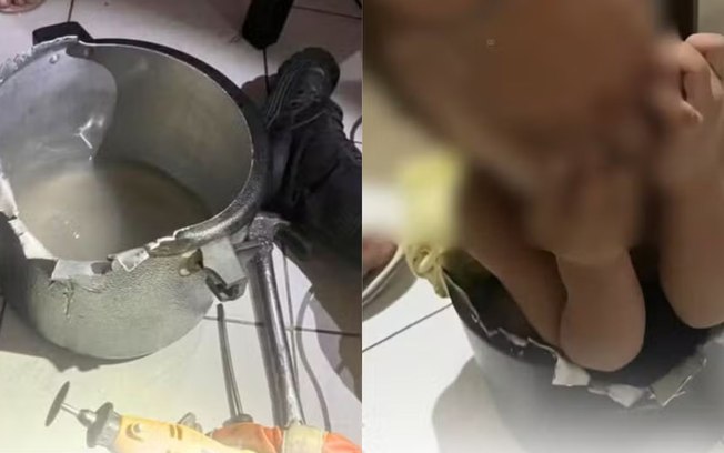 Um bebê, que ficou preso dentro de uma panela de pressão enquanto brincava no banheiro, foi resgatado pelo Corpo de Bombeiros, na última segunda-feira (20), em Itapipoca (CE).