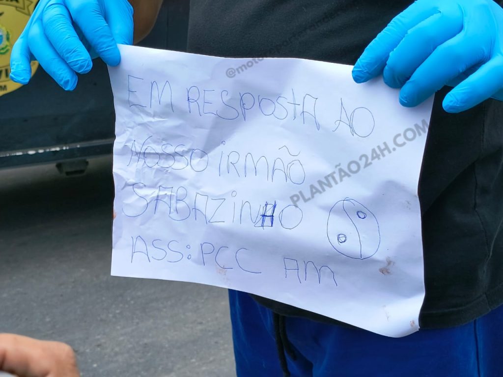 Junto ao cadáver, foi encontrado um bilhete com a mensagem: “Em resposta ao nosso irmão Sabazinho”, assinado pelo Primeiro Comando da Capital do Amazonas (PCC AM)