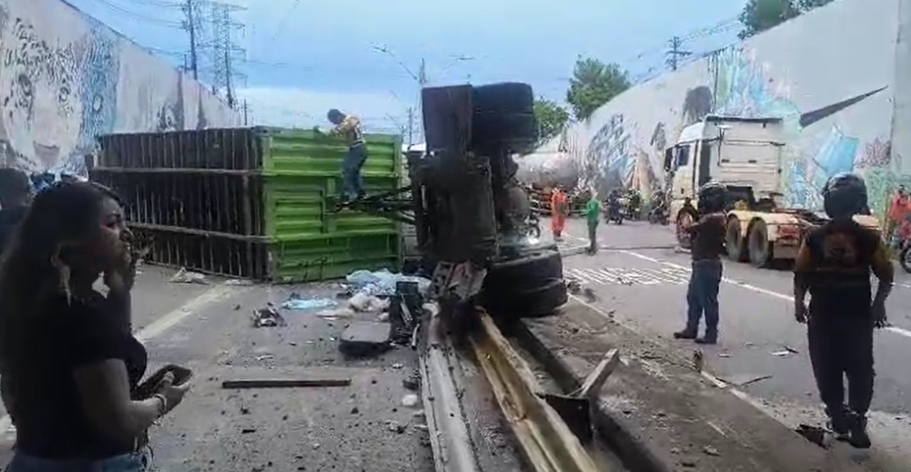 Ainda não há informações sobre o que causou o acidente, mas testemunhas informaram que o veículo estava em alta velocidade antes do ocorrido. A carreta subiu no meio-fio e tombou, na sequência.