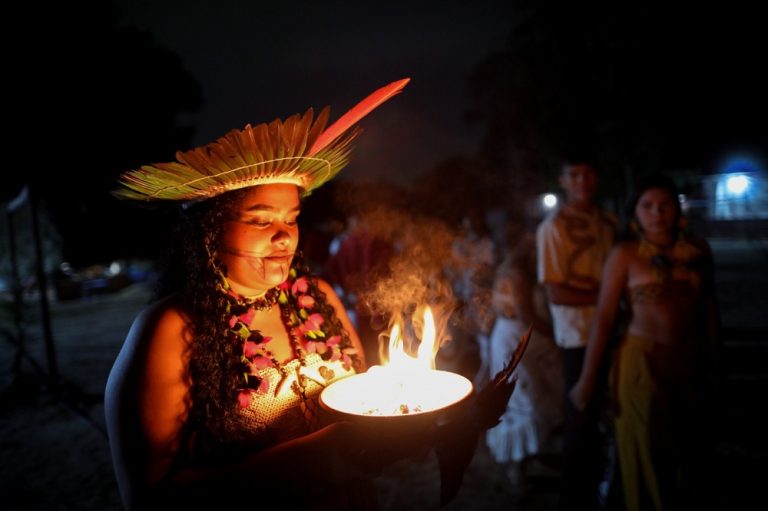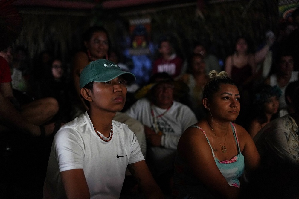Indígenas do Amazonas realizam um ritual especial e exibem a premiação do Oscar 2025 no Cine Aldeia, primeira sala de cinema em território indígena do Brasil. O evento acontece na Aldeia Inhaã-bé, localizada no rio Tarumã-Açú, região metropolitana de Manaus.
