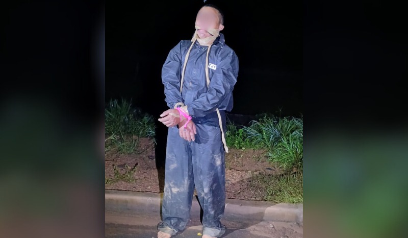 Ele estava com a boca amordaçada e as mãos amarradas. Além de ter sua motocicleta roubada, o homem foi forçado a realizar transferências bancárias para os criminosos.