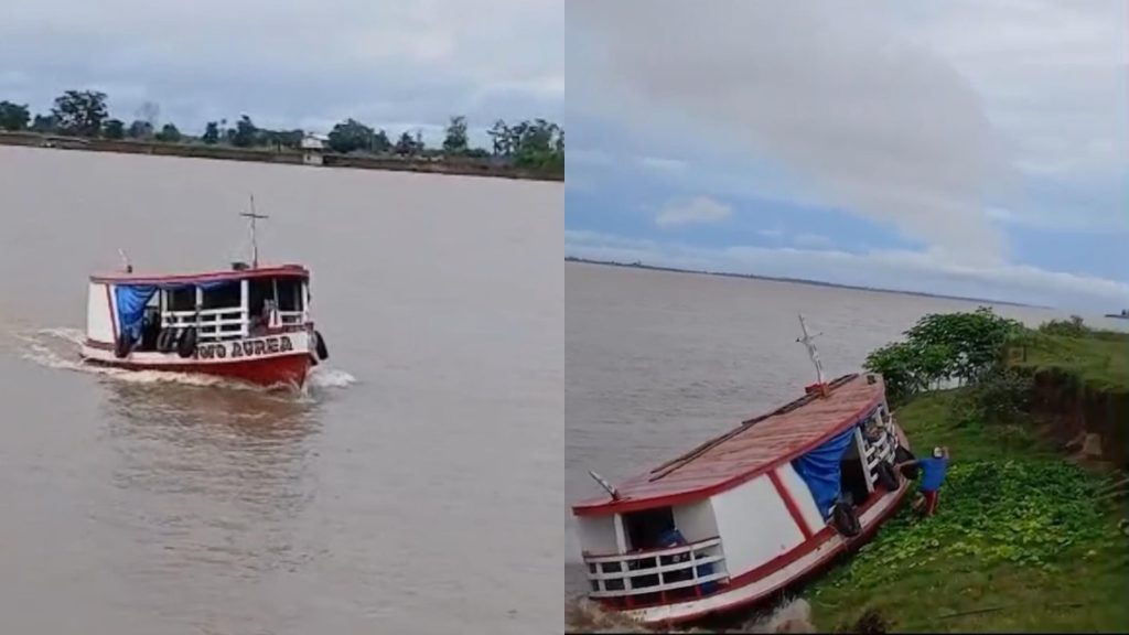 Moradores da região do Paraná do Amatari, em Itacoatiara, flagraram o momento em que o comandante de um barco está desacordado e colide contra um barranco, nesta quarta-feira (5).