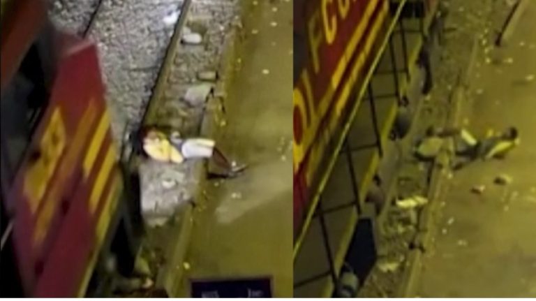 magens de câmeras de segurança na região de Ate mostraram o momento em que o trem se aproxima e o homem, deitado nos trilhos e aparentemente dormindo, é atingido.