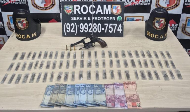Policiais militares da Rondas Ostensivas Cândido Mariano (Rocam) prenderam em flagrante um traficante de 26 anos na noite desta terça-feira (1), por volta das 23h, na rua Colibri, bairro Santa Etelvina, zona norte de Manaus.