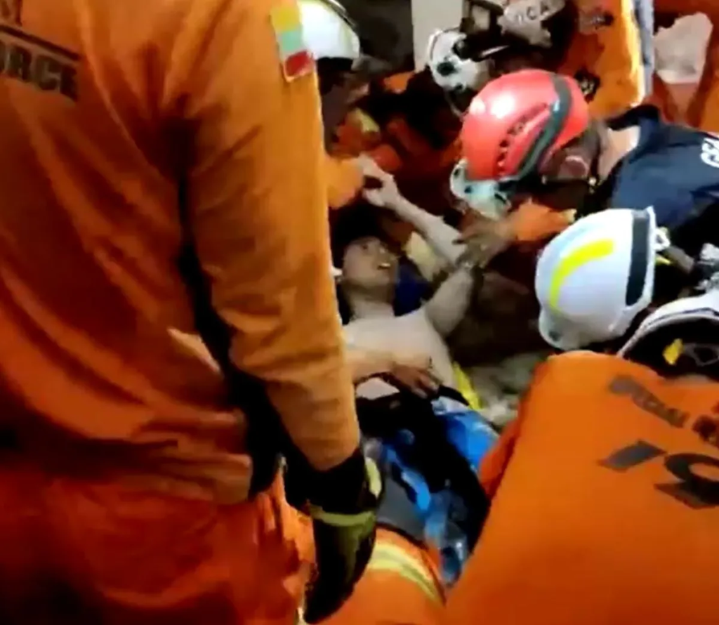 Mianmar: Homem é resgatado com vida 100 horas após terremoto pic.twitter.com/3X7RZorcJO
