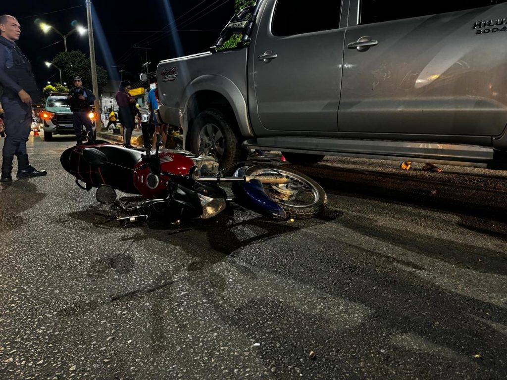 Manaus (AM) – Na noite desta quarta-feira (2), um acidente envolvendo uma caminhonete Hilux e uma motocicleta deixou um jovem ferido na Alameda Cosme Ferreira, entre os bairros Zumbi dos Palmares e São José, na Zona Leste de Manaus.