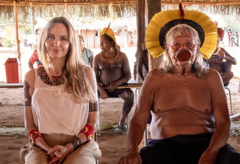 Angelina Jolie presenciou a conexão entre os indígenas e a floresta e apareceu em diversos registros, compartilhados pelo Instituto Raoni nas redes sociais. A atriz e ativista humanitária conversou com a coordenadora executiva, Mayalu Txucarramãe, sobre assuntos que envolvem a comunidade e a cultura indígena.