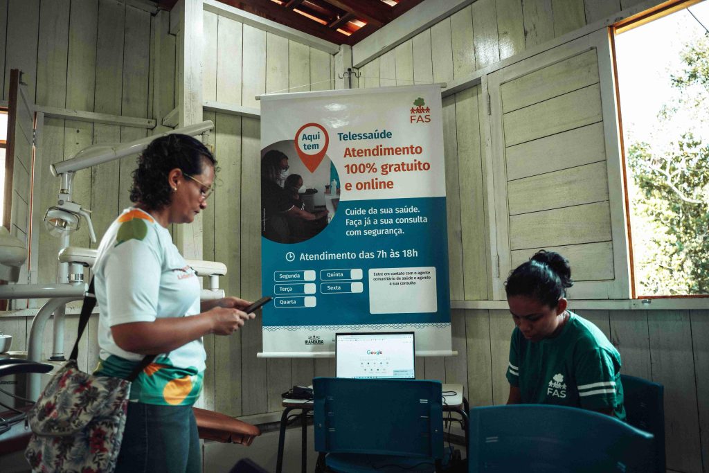“Os atendimentos de telessaúde são exemplos de como é possível aumentar qualitativamente a presença do SUS na floresta e levar dignidade aos povos da Amazônia”, diz Mickela Souza, gerente do Programa Saúde na Floresta da FAS.