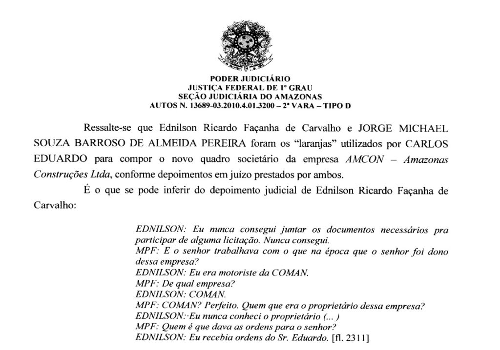 Jorge Michael Souza Barroso de Almeida Pereira já foi condenado em junho de 2015 a mais de 13 anos de prisão pelo juiz federal da 2ª Vara de Manaus, Marllon Souza. As investigações apontaram o empresário como integrante de um esquema de fraude em licitações que ocorreu no município de Coari, distante 363 quilômetros de Manaus, entre os anos de 2001 e 2007.