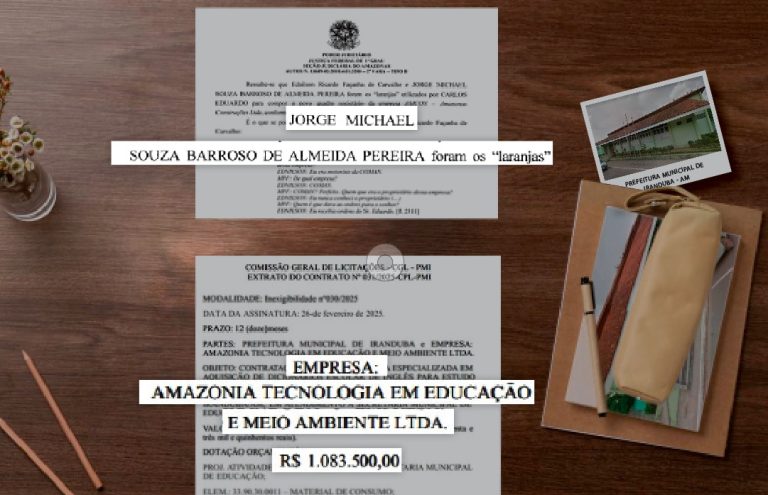 O prefeito de Iranduba, a 36 quilômetros de Manaus, Augusto Ferraz (União Brasil), dispensou um processo licitatório para contratar a empresa Amazônia Tecnologia em Educação e Meio Ambiente Ltda. O valor do contrato ultrapassa R$ 1 milhão e tem como objetivo a aquisição de dicionários de inglês para alunos do ensino fundamental I e II da rede municipal.