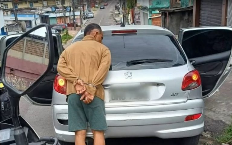 A prisão aconteceu após uma denúncia de sequestro envolvendo um veículo Peugeot, de cor prata. Policiais abordaram o carro na avenida Rodrigo Otávio, enquanto o suspeito transportava a vítima.