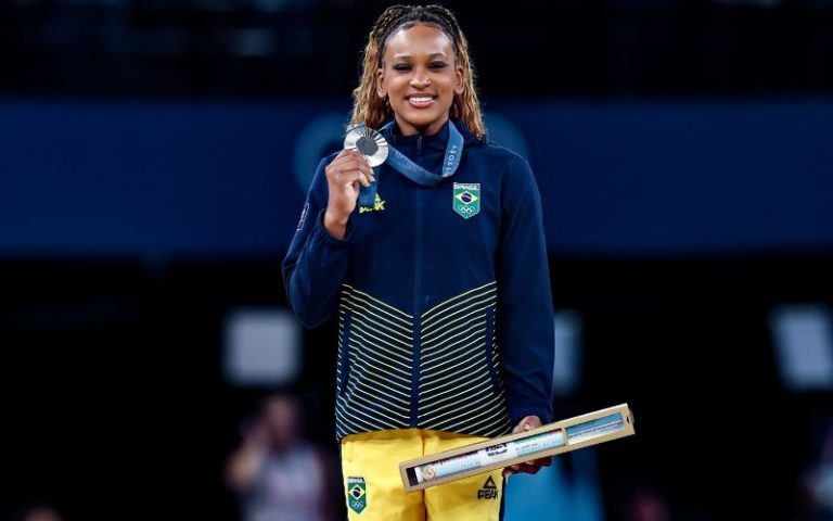 Maior medalhista olímpica do Brasil, com nove pódios, Rebeca Andrade foi o centro das atenções em Paris 2024 ao conquistar o ouro na prova de solo, competindo com a multicampeã norte-americana Simone Biles.