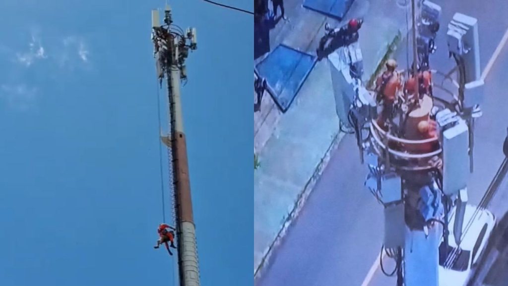 A equipe foi acionada para resgatar o homem, que estava no topo da torre localizada na rua Maria Amorim. Durante o resgate, o suspeito inicialmente se recusou a permitir o acesso dos militares, mas após uma conversa, consentiu com a subida da equipe. Os bombeiros usaram o triângulo de resgate para retirar o homem com segurança e entregá-lo à Polícia Civil.