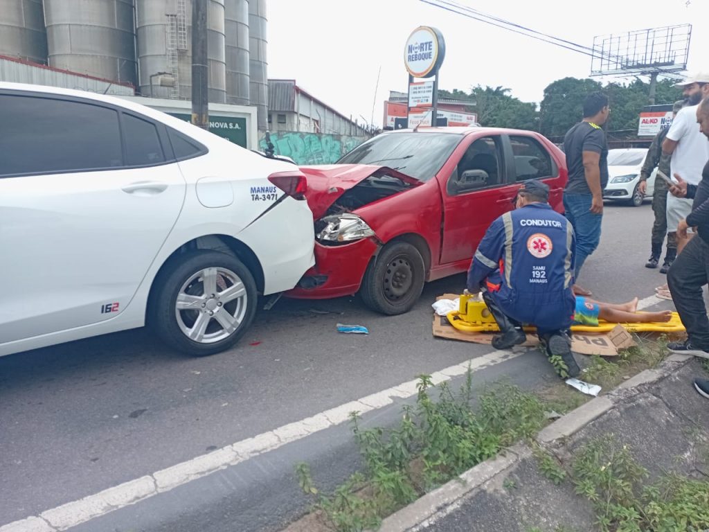 Na tarde desta quarta-feira (30), um acidente de trânsito deixou uma mulher grávida e duas crianças feridas na avenida Torquato Tapajós, nas proximidades da empresa Coca-Cola, sentido Centro, em Manaus.