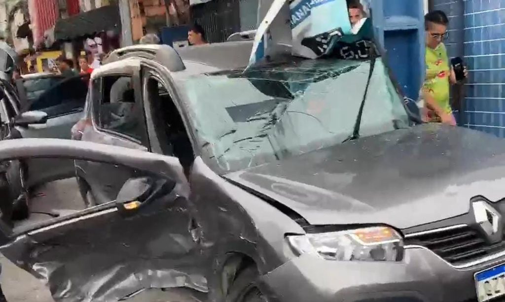 Com o impacto, o carro do foragido também bate em um poste de energia, e por muito pouco não atinge algumas pessoas que estavam na calçada.