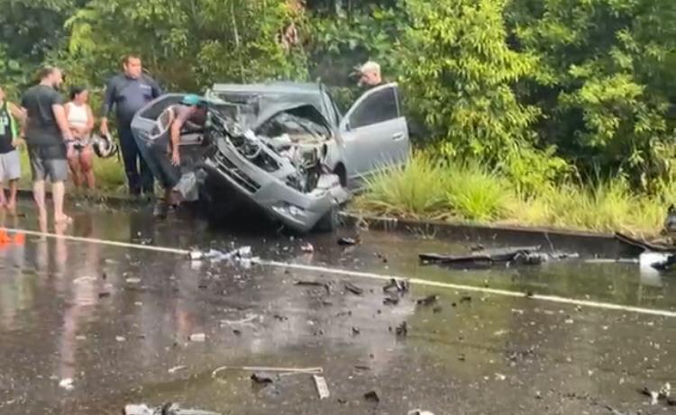 Uma mulher grávida morreu durante um grave acidente de trânsito, na tarde desta quinta-feira (8), no KM 42 da rodovia AM-070, que liga Manaus a Manacapuru. O caso envolveu dois veículos, um Fiat Toro e um Chevrolet Cobalt, que colidiram frontalmente em meio à forte chuva na região.