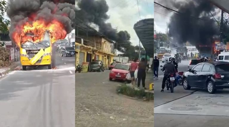 Um micro-ônibus do transporte alternativo, conhecido como “Amarelinho”, pegou fogo na manhã desta segunda-feira (12) e causou pânico entre passageiros e pessoas que passavam pela avenida Autaz Mirim, na área da Grande Circular, zona Leste de Manaus.