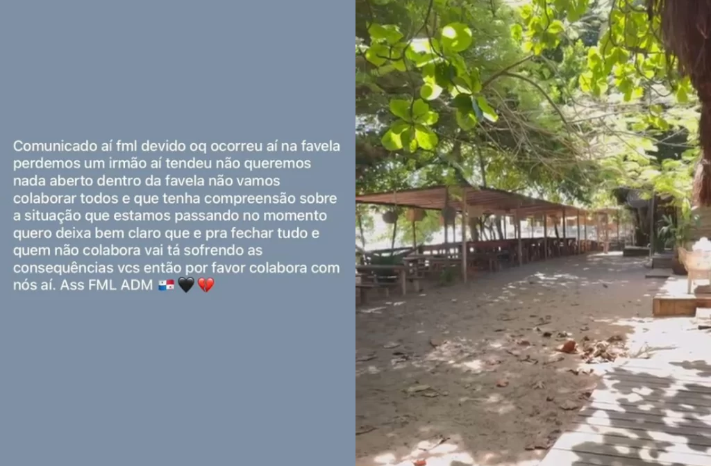 A reportagem teve acesso a publicações que avisam o toque de recolher e ameaças os comerciantes. “Quero deixar bem claro que é para fechar tudo e quem não colaborar vai estar sofrendo as consequências. Então, por favor, colabora com nós aí. Assinado: família ADM”, escreve um traficante em um post.