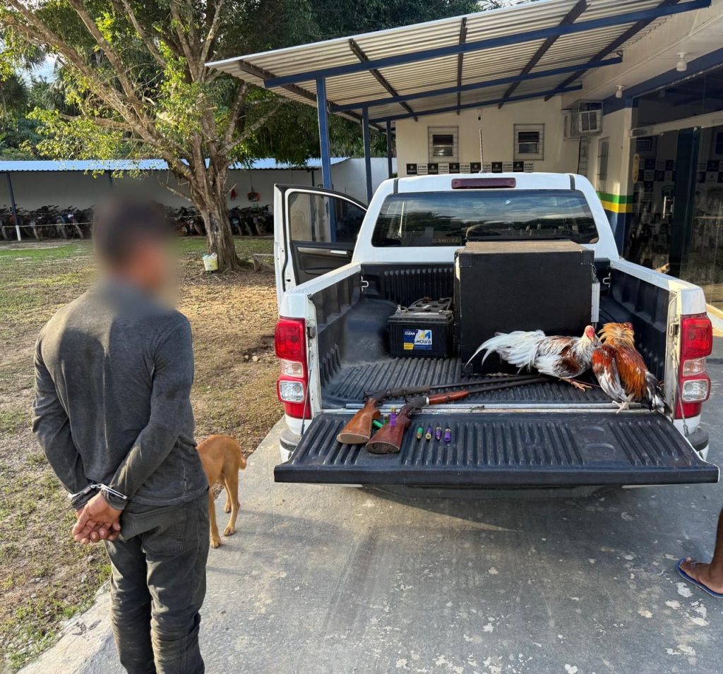 Durante o cumprimento do mandado de prisão na terça-feira (20), os policiais encontraram o suspeito em uma fazenda onde morava e trabalhava como caseiro. Na propriedade, foram apreendidas duas armas de fogo do tipo espingarda, além de galos que eram preparados para rinhas em uma arena no local. Ele foi preso em flagrante, juntamente com o dono do sítio.