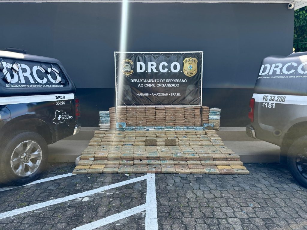 Cerca de 600 quilos de maconha tipo skunk foram apreendidos, nesta segunda-feira (26), em operação do Departamento de Repressão ao Crime Organizado (DRCO), com apoio da Core-AM. A carga está avaliada em R$ 12 milhões.
