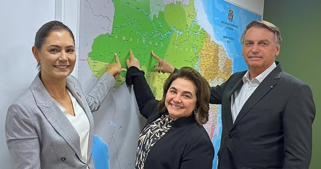 “Nossa pré-candidata ao governo do Estado [do Amazonas]. Maria do Carmo é uma mulher experiente e vai cuidar de quem cuida, que vem com esse olhar especial de mãe e educadora e que vai fazer o melhor para o seu povo”, disse Michelle.