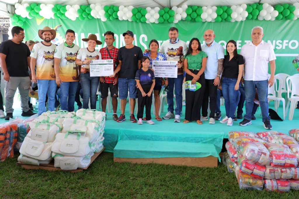 Entre os equipamentos entregues estão 18 canoas, 33 motores rabeta, 69 motores de popa, 24 botes e 36 roçadeiras.