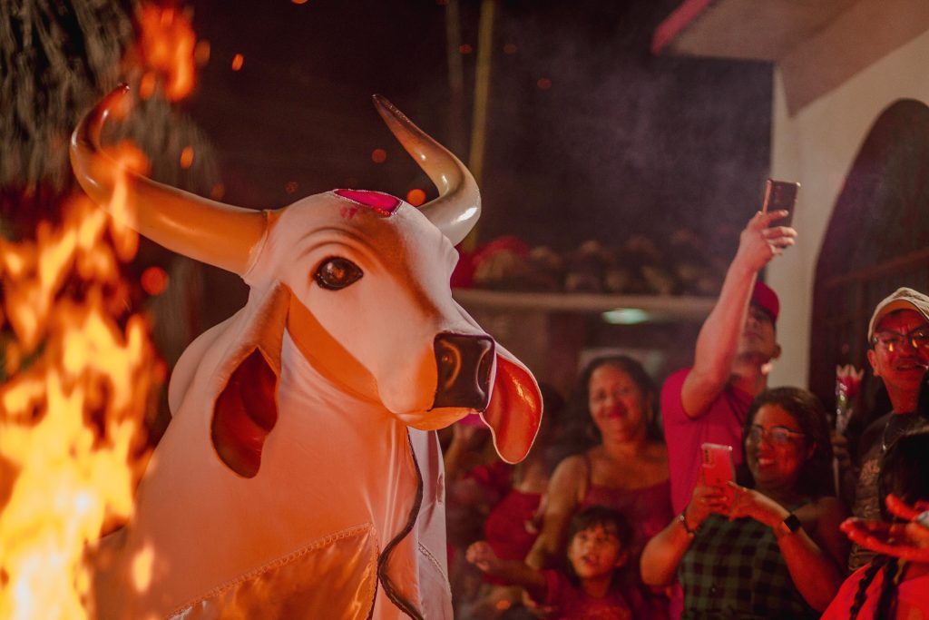 Após o momento de oração, o cortejo percorreu as ruas do bairro até a Catedral de Nossa Senhora do Carmo, com o boi dançando em torno de fogueiras e distribuindo rosas aos casais apaixonados. A cena foi marcada por emoção, fé e celebração popular.