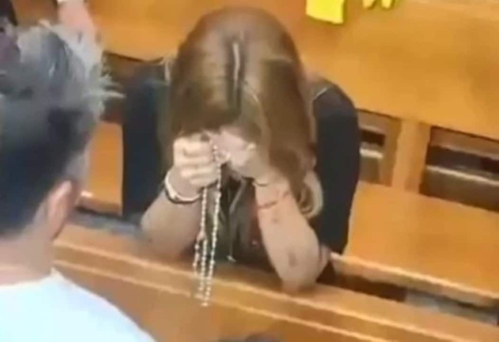 Após caminhar 22 quilômetros desde Goiânia, ela ajoelhou-se em busca de reflexão, mas logo foi interrompida pela multidão, com cenas repercutindo intensamente nas redes sociais.