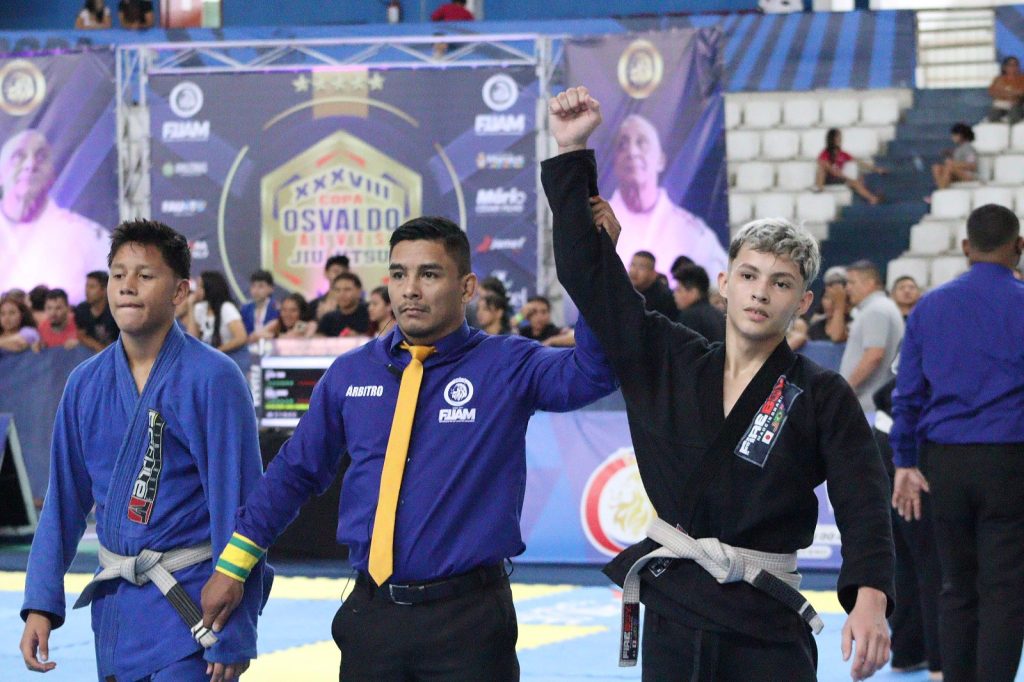 O jovem atleta Flávio Alexandre da Silva e Silva, de 15 anos, conquistou o título da Copa Osvaldo Alves de Jiu-Jítsu 2025, realizada neste sábado (5), na Arena Amadeu Teixeira, em Manaus. Morador do bairro Jorge Teixeira, ele compete pela academia Team Warriors House, localizada no Tancredo Neves, Zona Leste da capital amazonense.
