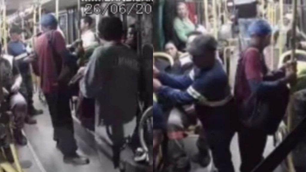 As imagens foram registradas por câmeras de segurança instaladas no coletivo da linha 358. Segundo o delegado Charles Araújo, coordenador do Núcleo de Repressão a Roubos no Transporte Coletivo (Nurrc), os dois homens estavam armados e roubaram os pertences dos passageiros.
