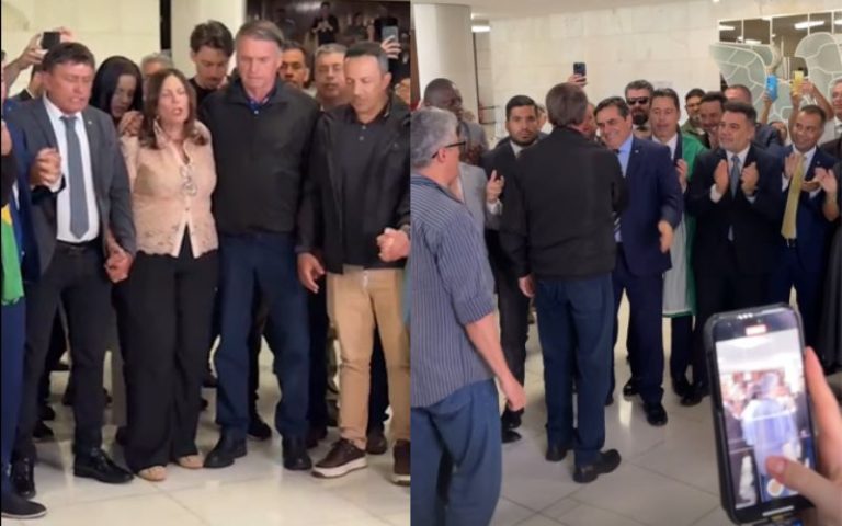 Brasília (AM) – Ao som de aplausos e gritos de “mito!”, o ex-presidente Jair Bolsonaro (PL) foi recebido com entusiasmo por deputados do Partido Liberal e aliados na Câmara dos Deputados, nesta segunda-feira (21). A recepção também contou com uma oração do Pai Nosso, entoada em coro pelos parlamentares presentes. O momento foi transmitido ao … Continue lendo Deputados do PL fazem oração por Bolsonaro durante visita à Câmara