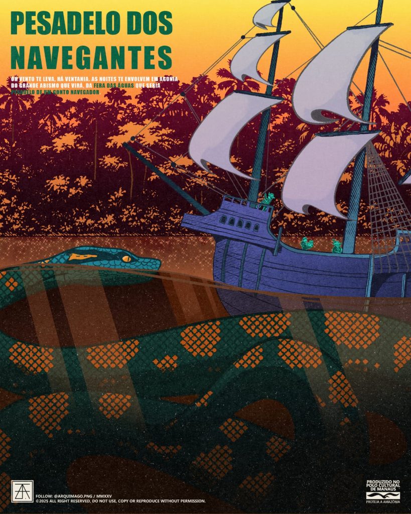 Sua obra tem como base a toada Pesadelo dos Navegantes, eternizada por Arlindo Jr., e reimagina o choque cultural dos europeus diante da grandiosidade amazônica.