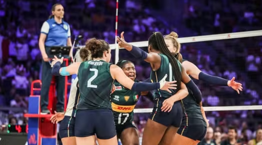 No terceiro set, o Brasil voltou a errar. A Itália abriu vantagem com pontos em falhas brasileiras e cresceu ainda mais com a entrada de Antropova, que substituiu Egonu. A seleção brasileira até equilibrou as ações, mas não manteve o ritmo e perdeu a parcial por 25 a 22.