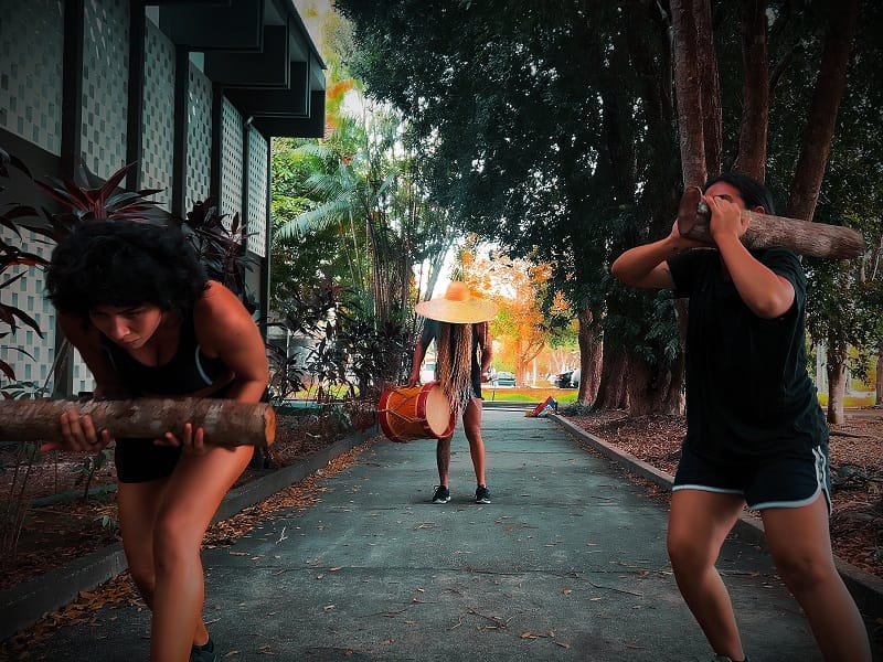 A intervenção é realizada por Tainá Andes, Jaú Tupinambá e Vívian Oliveira, que também estreia na composição musical cênica. O trio traduz imagens por meio da dança, do teatro e da música.