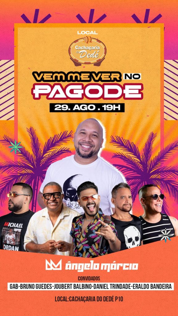 O cantor Ângelo Márcio sobe ao palco e recebe os convidados Joubert Balbino, Bruno Guedes, Daniel Trindade, Gab e Eraldo Bandeira, com os melhores pagodes da atualidade.