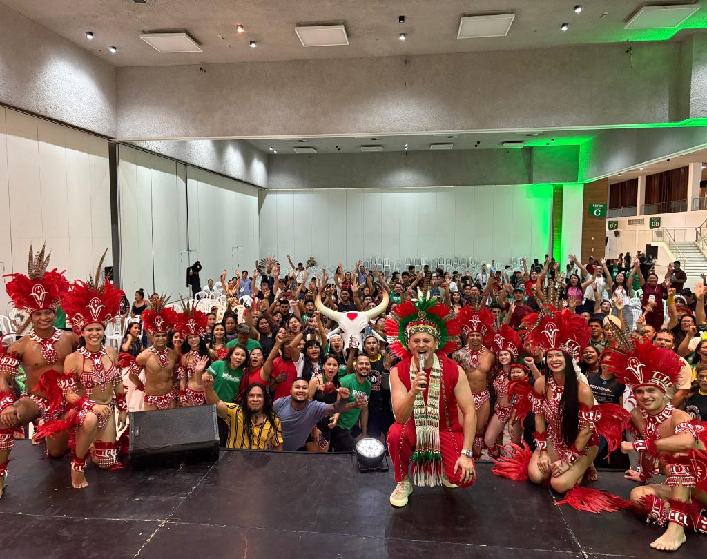 O Boi-Bumbá Garantido abriu a Noite Cultural do XII Encontro Nacional dos Estudantes Indígenas (ENEI) na quinta-feira (7), no Centro de Convenções Vasco Vasques, em Manaus. A apresentação emocionou o público e reforçou o compromisso do Boi do Povão com as causas indígenas.