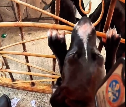 Uma cadela de três meses, chamada Safira, ficou com a boca presa nesta sexta-feira (15) em uma grade de ferro de um portão, no bairro São José, Zona Leste de Manaus. O animal se encontrava em grande risco e agonia.