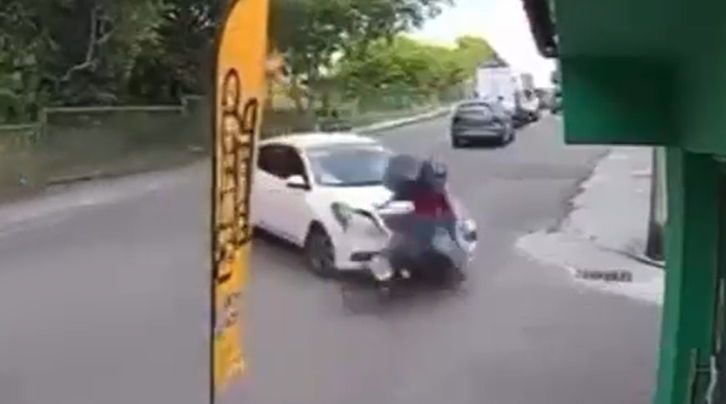 Um grave acidente de trânsito foi registrado na tarde deste sábado (16) na Rua Dom João, ao lado do Parque do Mindu, no bairro Parque 10 de Novembro, Zona Centro-Sul de Manaus. A colisão envolveu um carro branco e uma motocicleta, e o momento foi registrado por câmeras de segurança instaladas na área.