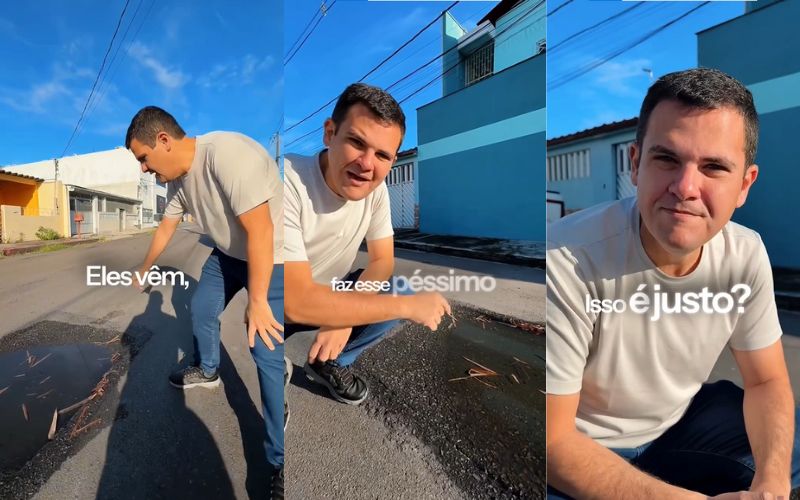Em vídeo publicado nas redes sociais, nesta segunda-feira (18), ele mostrou trechos de ruas recém-asfaltadas pelo Executivo Municipal que foram abertos pela empresa para intervenções. Mas, de acordo com ele, acabaram mal recuperados, gerando riscos à mobilidade urbana.