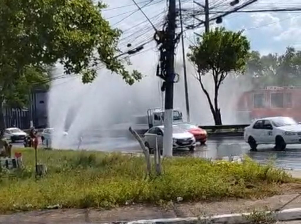 O vazamento transformou a via em uma espécie de “cachoeira”, surpreendendo motoristas e pedestres que passavam pelo local. A força da água era tão intensa que motociclistas ficaram encharcados e até mesmo alguns carros tiveram a parte interna invadida pela enxurrada.