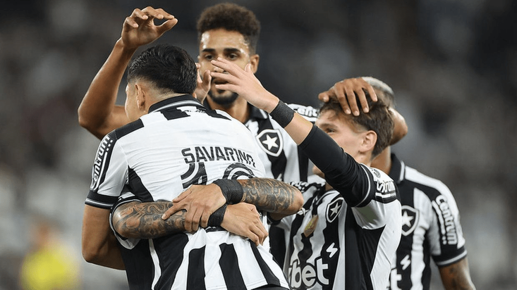 A escalação do Botafogo tem: Léo Linck, Vitinho, Kaio Pantaleão, Alexander Barboza e Marçal; Newton, Marlon Freitas e Savarino; Álvaro Montoro, Santi Rodríguez e Chris Ramos.