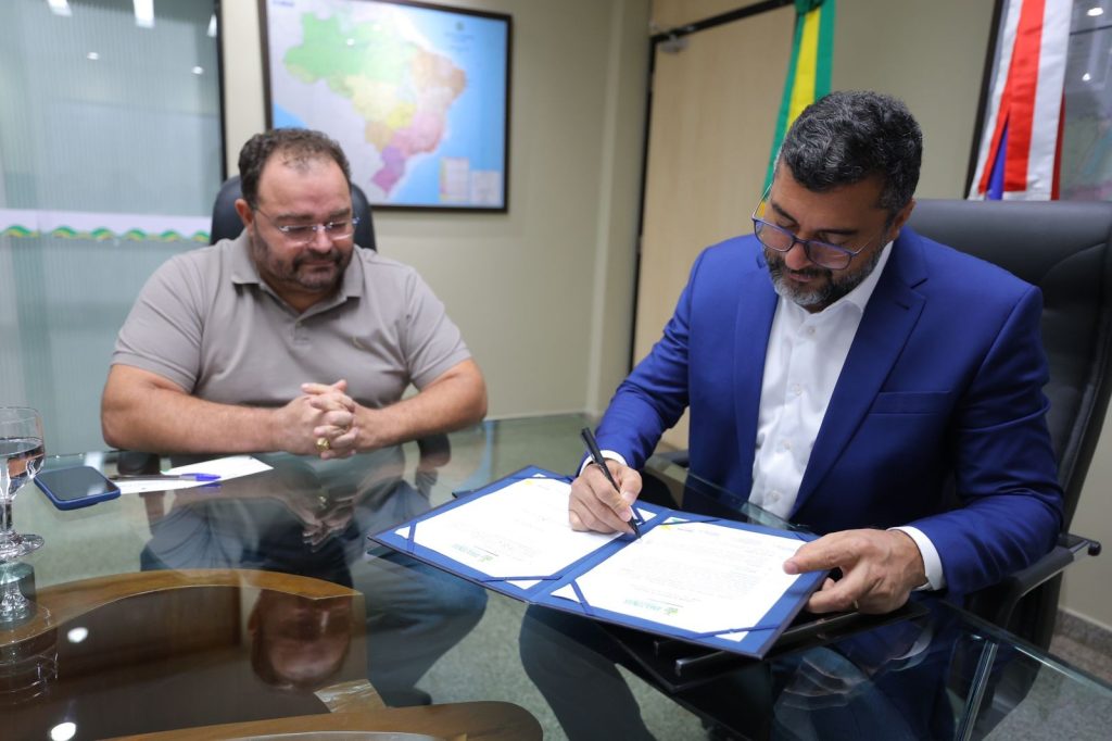 O governador Wilson Lima assinou, nesta terça-feira (30/09), a ordem de serviço para o início das obras de recuperação viária no município de Boca do Acre (a 1.028 quilômetros de Manaus). A assinatura, que contou com a presença do prefeito Frank Barros, foi realizada na sede do Governo do Estado, no bairro Compensa, zona oeste da capital.